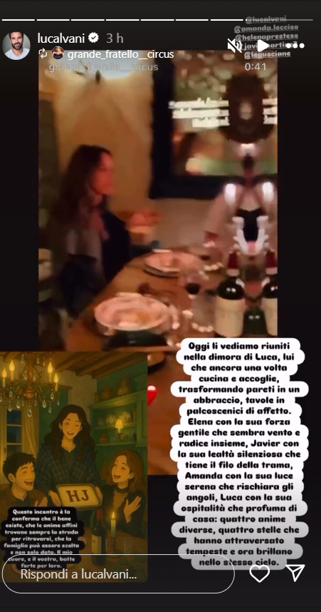 LUCA CALVANI, UNA DEDICA PER HELEVIER E AMANDA LECCISO: COS’HA SCRITTO SUI SOCIAL L’EX VIPPONE (FOTO)- L’ex concorrente del reality show di Canale 5 al cui timone abbiamo visto Alfonso Signorini, in queste ore, ha rivisto Helena, Javier e Amanda. Proprio dopo la reunion con i tre protagonisti del Grande Fratello 18, l’attore toscano d’origine ha risposto a una dedica dei followers, spendendo delle bellissime parole per la Prestes, Martinez e Lecciso.