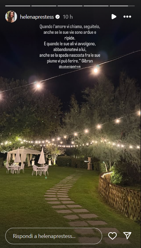 Di seguito trovate le dichiarazioni di Helena: “Quando l’amore vi chiama, seguitelo, anche se le sue vie sono ardue e ripide. E quando le sue ali vi avvolgono, abbandonatevi a lui. Anche se la spada nascosta fra le sue piume vi può ferire”.