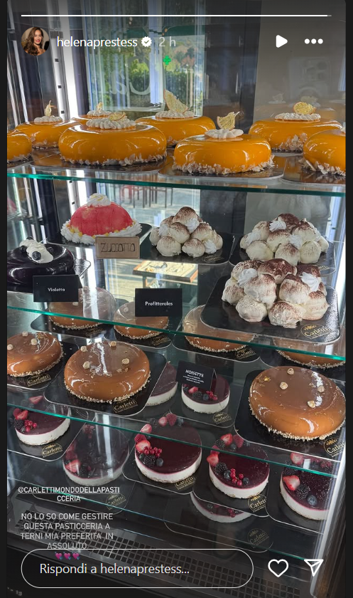 Ecco le dichiarazioni di Helena Prestes: “La mia pasticceria preferita”.