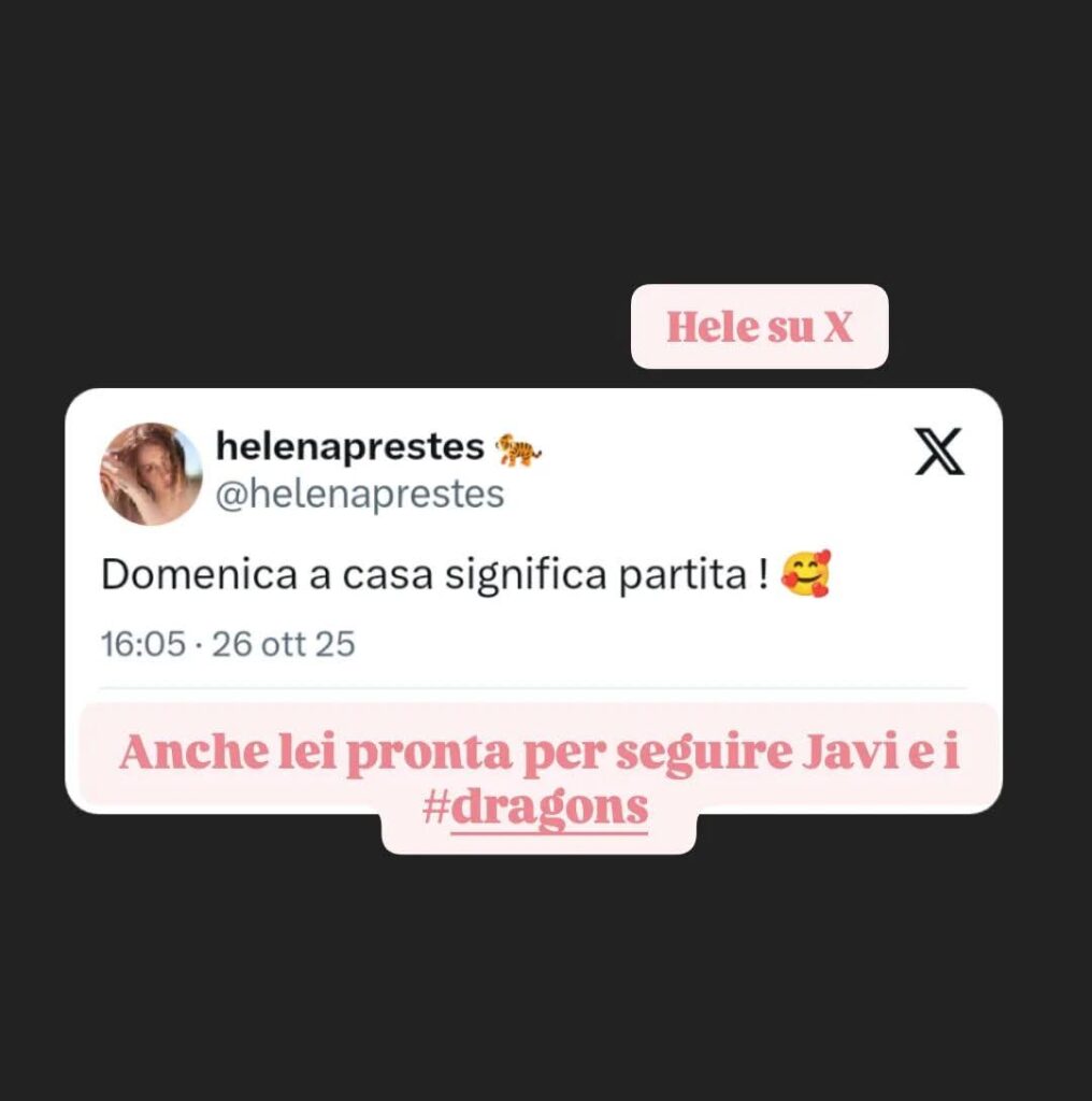 HELENA PRESTES: IL SUO SUPPORTO PER JAVIER MARTINEZ. COS’HA ASSERITO L’EX CONCORRENTE DEL GF 18 (FOTO)- Manca sempre meno al debutto di Javier Martinez in Serie A 3 con la maglia del Terni Volley, in cui l’argentino vorrà chiaramente ben figurare. A supportare il noto ex concorrente del reality show di Canale5 condotto da Alfonso Signorini, di scena questa sera, 26 ottobre 2025, al palazzetto di Sabaudia, ci sarà anche la sua dolce metà, Helena Prestes.