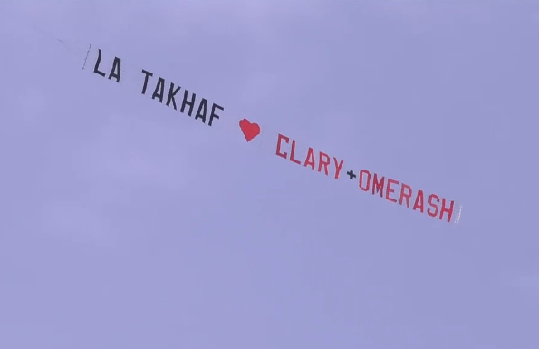 “Omer, Clary ha detto sì”, frase che ha scatenato entusiasmo. Il gesto dall’alto ha creato un’atmosfera magica: un messaggio semplice, ma pieno di forza, di affetto e di promessa. Un aereo che Rasha non dimenticherà mai. “Quando esco te li do io i soldi che hai speso”, ha detto ridendo.