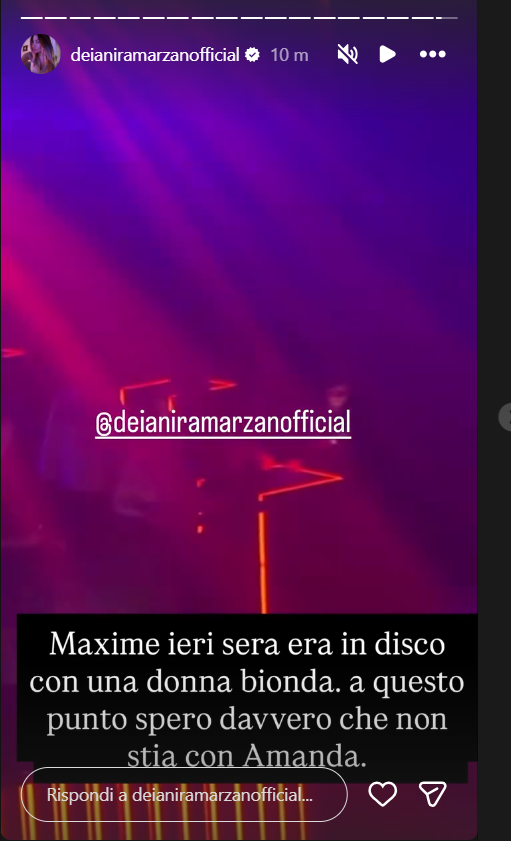 Ecco le parole dell’esperta di gossip, Deianira Marzano: “Maxime ieri sera era in disco con una donna bionda. A questo punto spero davvero che non stia con Amanda”.