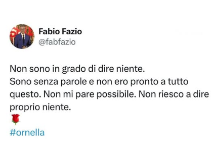Parole nude, dirette, che testimoniano un legame profondo e un rispetto sincero per una figura che ha attraversato decenni di storia dello spettacolo. Con lei Fazio ha condiviso incredibili momenti di tv, tra risate e forte ironia.