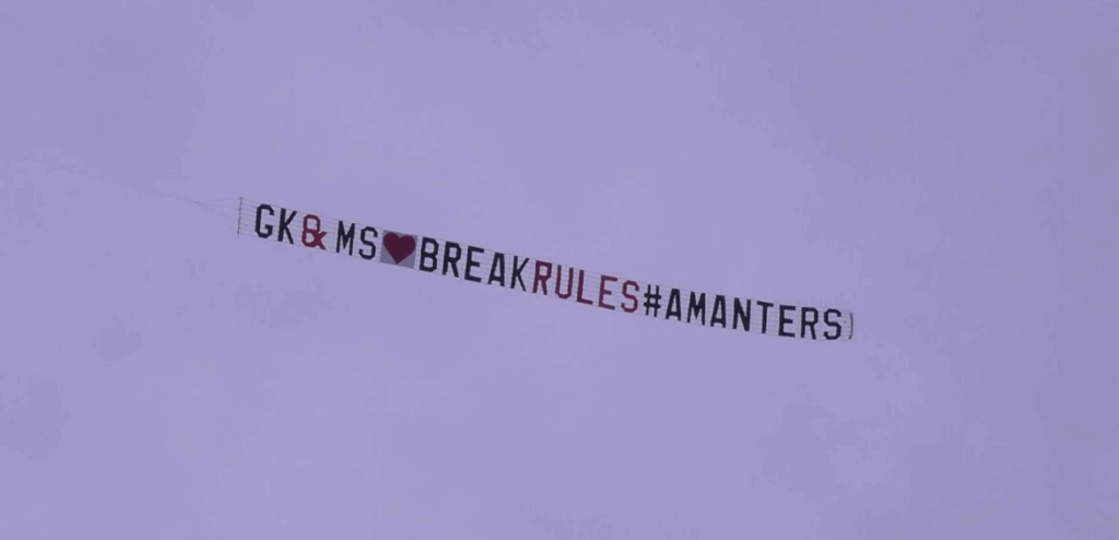 “GK&MS❤️BREAKRULES#AMANTERS”, recita lo striscione per Grazia e Mattia da parte dei followers.