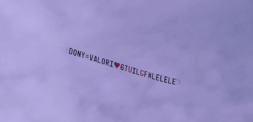 Ecco lo striscione dei fan per Donatella Mercoledisanto: “Dony= valori, 6 tu il GF”.