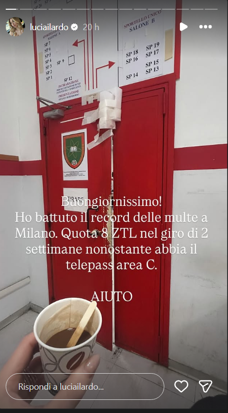 Ecco riportate, di seguito, le dichiarazioni di Lucia: “Buongiornissimo.. Ho battuto il record delle multe a Milano. Quota 8 ZTL nel giro di 2 settimane nonostante abbia il mio telepass area C. Aiutatemi”.