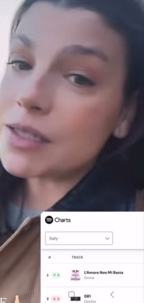 Attraverso una Storia Instagram, Emma ha mostrato la classifica delle canzoni più ascoltate, soffermandosi proprio sulla sua posizione al primo posto. Visibilmente emozionata, ha condiviso parole semplici ma cariche di significato: “Non sono preparata, sono emozionata, non so cosa si dice in questi casi. Se non grazie, grazie a tutti voi.” La cantante ha poi riflettuto sul valore del tempo nella musica, sottolineando come alcuni brani non smettano mai davvero di vivere: “Le canzoni, a quanto pare, tornano. Quando fanno parte di un immaginario, del repertorio, restano per sempre.”