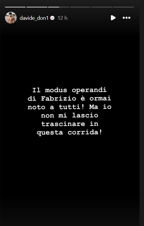 Ecco riportate, di seguito, le dichiarazioni di Donadei: “Il modus operandi di Fabrizio è ormai noto a tutti! Ma io non mi lascio trascinare in questa corrida! Sono entrato al Gf Vip facendo regolare provino! Io non mi lascio coinvolgere in pettegolezzi da osteria e di basso fondo, né posso tollerare insinuazioni false e tendenziose”.