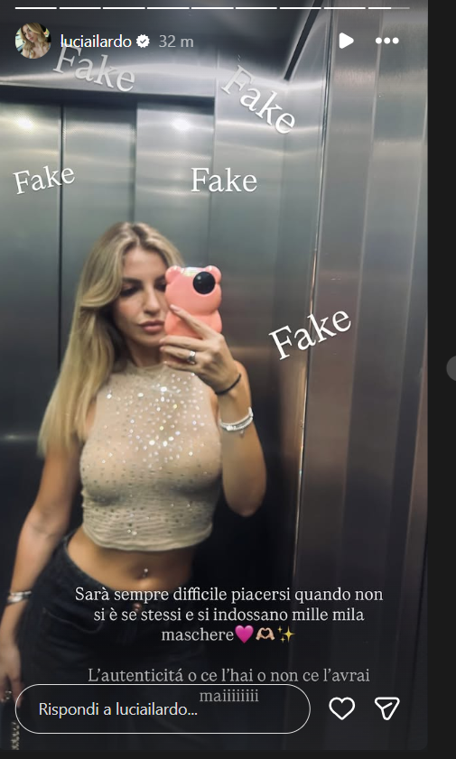 Ecco riportate, di seguito, le dichiarazioni di Lucia: “Sarà sempre difficile piacersi quando non si è sé stessi e si indossano mille mila maschere. L’autenticità o ce l’hai o non ce l’avrai mai”.