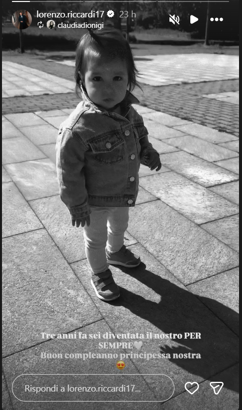 Ecco riportate, di seguito, le dichiarazioni di Lorenzo Riccardi: “Tre anni fa sei diventata il nostro per sempre. Buon compleanno principessa nostra”.