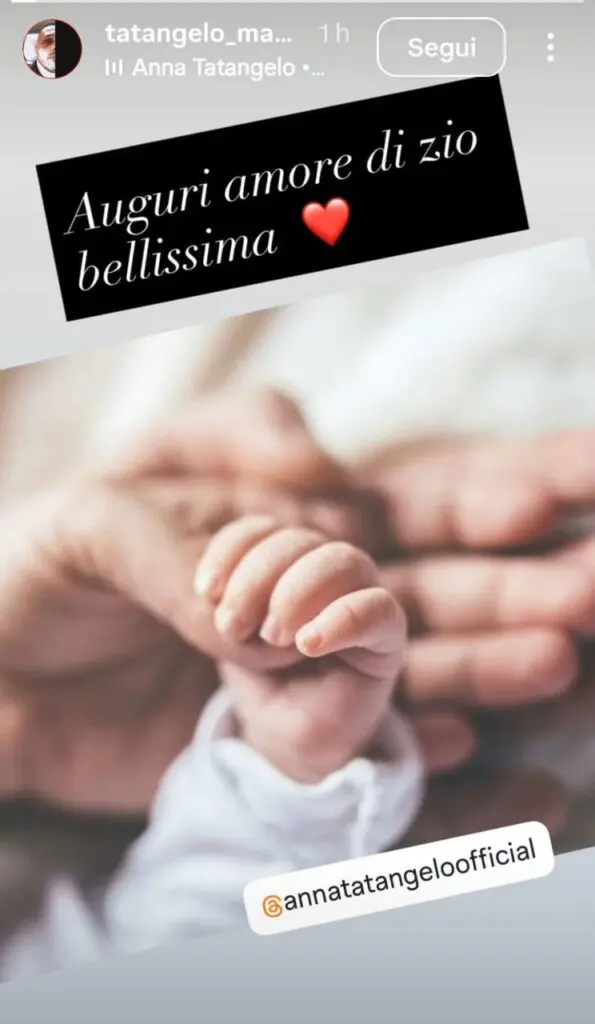 A dare la notizia è stato lo zio, Maurizio Tatangelo, che ha fatto gli auguri alla mamma, con una storia divenuta subito virale.