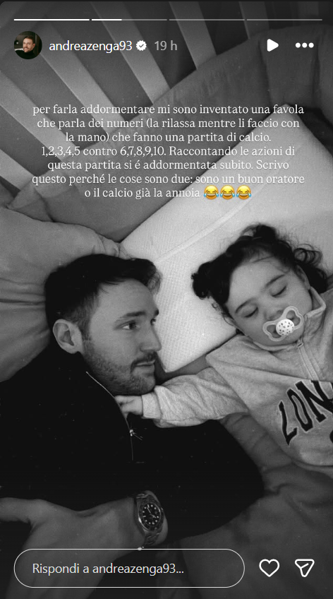 ANDREA ZENGA, LA STRATEGIA PER FAR DORMIRE LA FIGLIA: LE PAROLE DELL’EX VIP– In queste ore, l’ex amato concorrente del reality show di Canale Cinque al cui timone abbiamo visto Alfonso Signorini, ha rilasciato delle importanti dichiarazioni, svelando di aver escogitato una nuova strategia per far addormentare la figlia. Scopriamo insieme che cos’ha asserito nel dettaglio Zenga sul suo profilo Instagram ufficiale.
