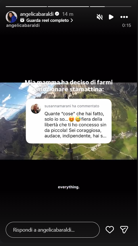 Ecco riportate, di seguito, le dichiarazioni di Angelica Baraldi sui social networks: “Mia mamma ha deciso di farmi emozionare stamattina”.