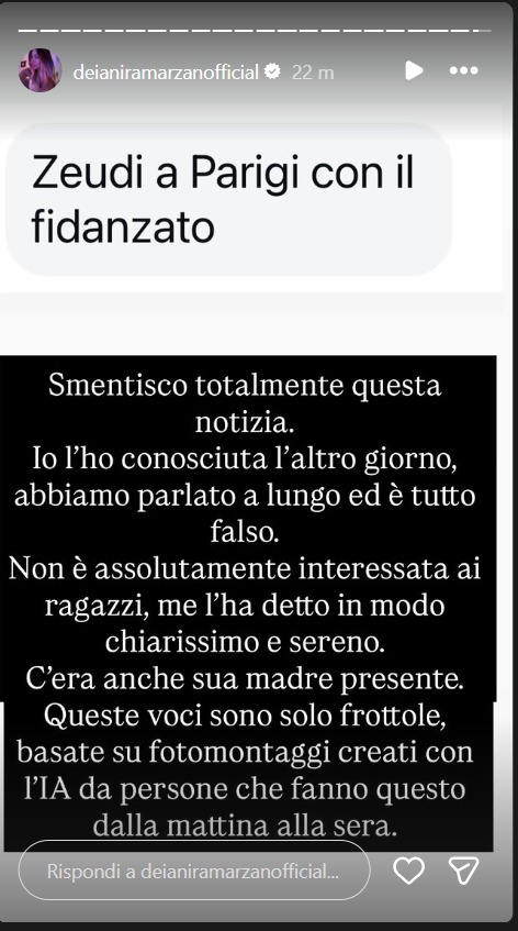 Deianira Marzano ha scritto su Instagram: “Smentisco totalmente questa notizia”, ha esordito l’esperta di gossip sui social.