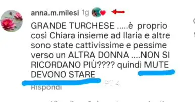 Poi si rivolge all’ex giornalista: “Le cicatrici che mi porto di un anno e mezzo di sofferenza…Sono stanca, sono veramente incazzata con le persone come te, che si proclamano paladine di battaglie che non sanno neanche cosa siano. Perché la prima regola è quella di non dire mai un se e un ma a chi sta denunciando. E tu, cara Turchese, hai messo like a tutte le persone che hanno detto qualcosa contro di me. Quella è una persona che cerca consensi, applausi, perché io ho guardato a chi metti like. Ho guardato a quando tu metti like dicendo “Eh, devi stare muta”. Devono stare muti a quanto rispondi alle persone. Io queste cose le ho viste e questa non è una persona che vuole combattere il bullismo, ma, anziché combatterlo, lo alimenta.” Ed ancora: