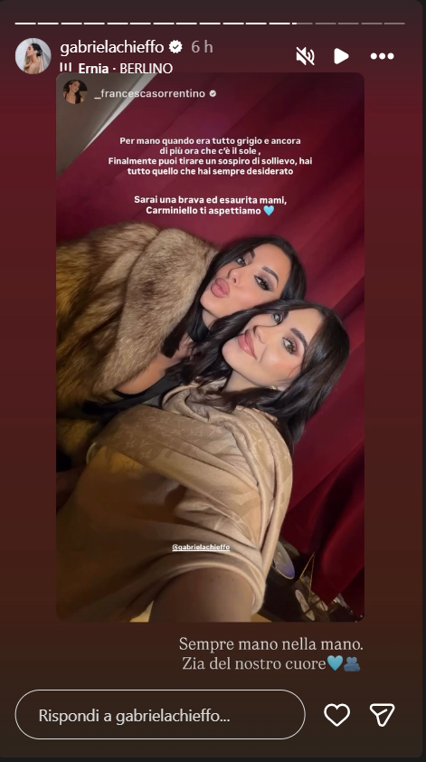 Ecco riportate, di seguito, le dichiarazioni dell’amica di Gabriela Chieffo: “Per mano quando era tutto grigio e ancora di più ora che c’è il sole, Finalmente puoi tirare un sospiro di sollievo, hai tutto quello che hai sempre desiderato”, ha scritto la fidanzata di Manuel Maura.