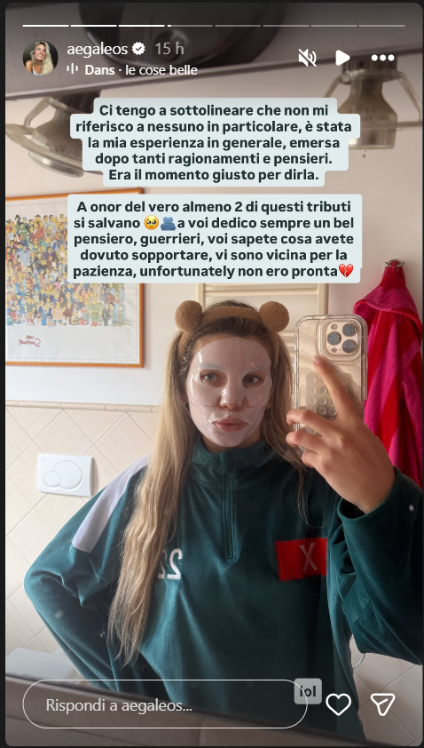 Ecco riportate, di seguito, le dichiarazioni di Anita: “Ci tengo a sottolineare che non mi riferisco a nessuno in particolare, è stata la mia esperienza in generale, emersa dopo tanti ragionamenti e pensieri. Era il momento giusto per dirla. A onore del vero almeno 2 di questi tributi si salvano, a voi dedico sempre un bel pensiero, guerrieri, voi sapete cosa avete dovuto sopportare, vi sono vicina per pazienza, sfortunatamente non ero pronta”.
