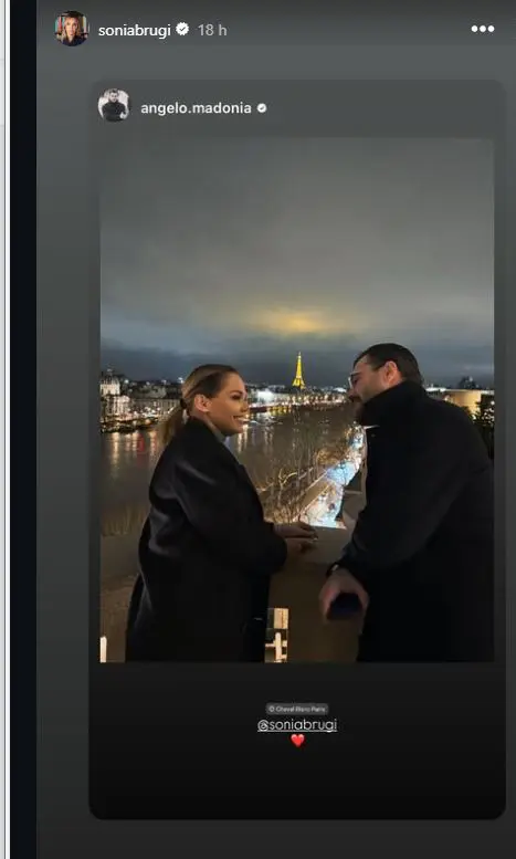 A condividere lo scatto è stata proprio Sonia, che ha ripostato una foto romantica con Angelo sullo sfondo della Torre Eiffel illuminata. Un cinquantaduesimo compleanno pieno d’ amore. I due, affacciati su un ponte con la Senna alle spalle, si scambiano sguardi carichi di intesa. Nessuna distanza, nessuna tensione: solo sorrisi e un cuore rosso a suggellare il momento.