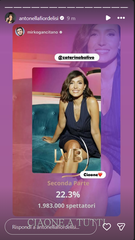 Ecco riportate, di seguito, le dichiarazioni di Antonella: “22.3% di share. 1.983.000 spettatori. Ciaone a tutti”.