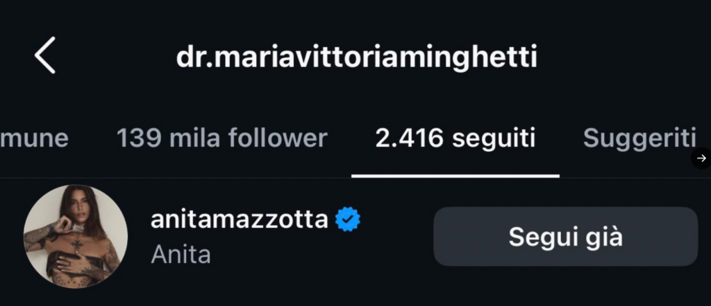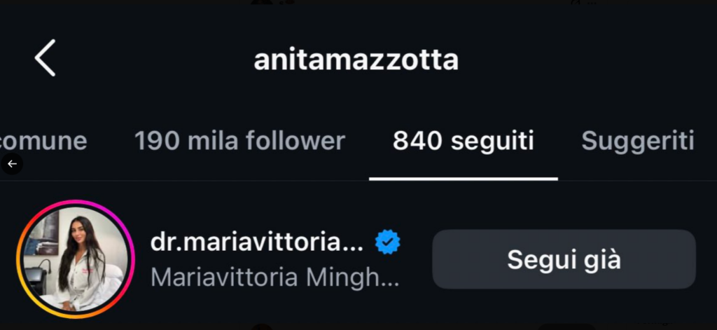 Anche la Mazzotta ha cominciato a seguire sui social la dottoressa Maria Vittoria Minghetti, fidanzata con l’idraulico toscano d’origine, Tommaso Franchi.