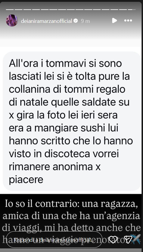 C’è però da dire che Deianira ha svelato: “Io so il contrario: una ragazza, amica di una che ha un’agenzia di viaggi, mi ha detto anche che hanno un viaggio prenotato”. Che cosa ne pensate? Quale sarà la verità?