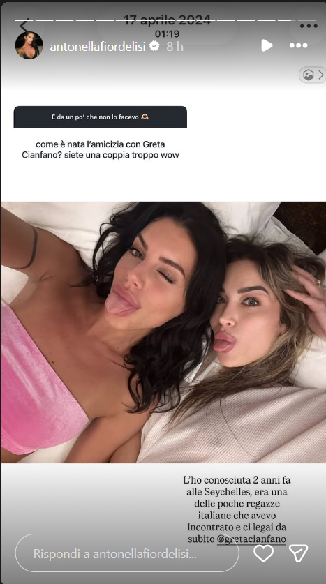 ANTONELLA FIORDELISI LA DICE TUTTA SU GRETA CIANFANO: LE PAROLE DELL’EX AMATA VIPPONA ORIGINARIA DELLA CAMPANIA. COS’HA AFFERMATO LA NOTA INFLUENCER- In queste ore, la tanto amata ex concorrente del reality show di Canale5 condotto da Alfonso Signorini, ha rivelato di aver un bel rapporto di amicizia con Greta. Sentite cos’ha detto Antonella sulla Cianfano.