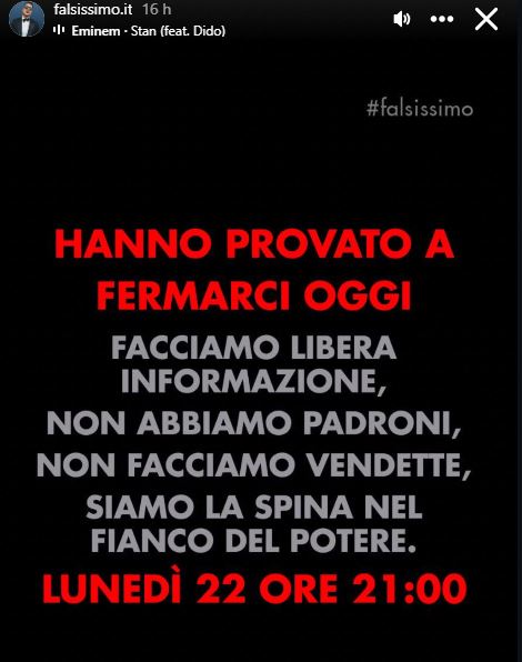 Tra i contenuti finiti sotto sequestro c’è anche l’intervista ad Antonio Medugno, annunciata online per lunedì 22 dicembre. Un punto su cui la difesa insiste è che Fabrizio ha imparato cosa può e cosa non può fare. Se ci sono contenuti ritenuti illeciti dal pm, non verranno pubblicati. Ma un’intervista resta un’intervista. C’è qualcuno che può impedire a qualcun altro di pubblicarla?